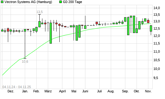 Mit dem Rücksetzer auf 12,75 EUR hat die Vectron Systems-Aktie am 03.11.2025 die 200-Tage-Linie nach unten gekreuzt.Die Vectron Systems-Aktie befand sich seit dem 15.10.2025 im langfristigen ...weiterlesen