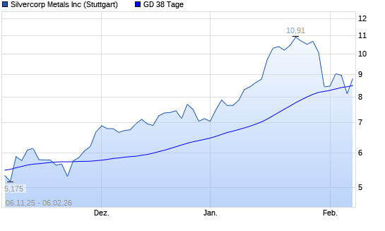 Mit dem Rücksetzer auf 8,24 EUR hat die Silvercorp Metals-Aktie am 05.02.2026 die 38-Tage-Linie nach unten gekreuzt.Der Abstand zur 200-Tage-Linie beträgt aktuell +54,08%. ...weiterlesen
