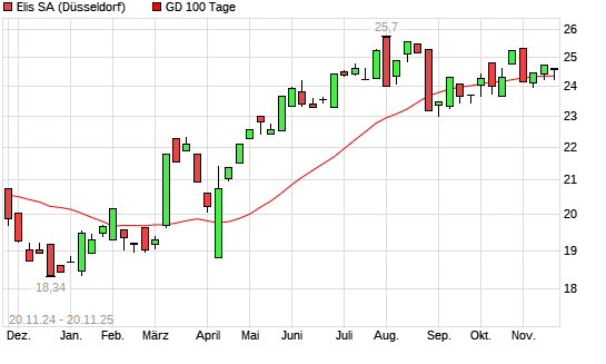 Mit dem Rücksetzer auf 24,26 EUR hat die Elis Ord Shs-Aktie am 19.11.2025 die 100-Tage-Linie nach unten gekreuzt.Die Elis Ord Shs-Aktie befindet sich seit dem 10.04.2025 im langfristigen ...weiterlesen