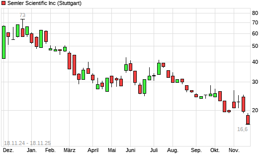 Mit dem Rücksetzer auf 18,50 EUR hat die Semler Scientific-Aktie (ISIN US81684M1045) am 17.11.2025 ein neues 12-Monats-Tief erreicht und damit den Kurs vom 23.10.2025 eingestellt.Der Abstand ...weiterlesen