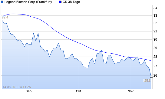 Mit dem Rücksetzer auf 27,20 EUR hat die Legend Biotech Corp-Aktie am 13.11.2025 die 38-Tage-Linie nach unten gekreuzt.Die Legend Biotech Corp-Aktie befindet sich seit dem 07.08.2025 im ...weiterlesen