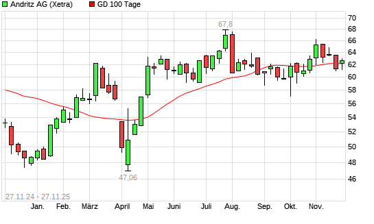 Mit dem Rücksetzer auf 61,15 EUR hat die Andritz-Aktie am 26.11.2025 die 100-Tage-Linie nach unten gekreuzt.Die Andritz-Aktie befindet sich seit dem 24.04.2025 im langfristigen Aufwärtstrend ...weiterlesen