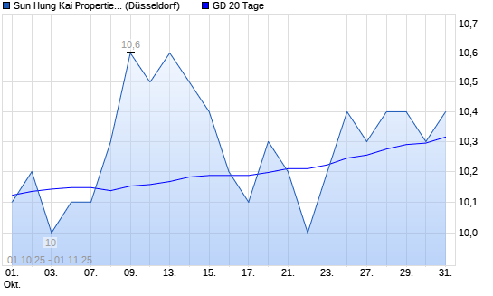 Mit dem Anstieg auf 10,50 EUR hat die Sun Hung Kai Properties-Aktie am 31.10.2025 die 20-Tage-Linie nach oben gekreuzt.Die Sun Hung Kai Properties-Aktie befindet sich seit dem 09.05.2025 im ...weiterlesen