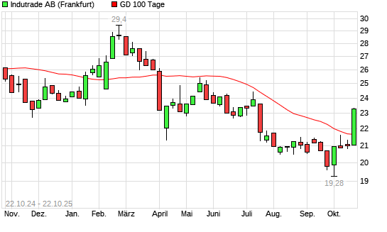 Mit dem Anstieg auf 23,32 EUR hat die Indutrade-Aktie am 21.10.2025 die 100-Tage-Linie nach oben gekreuzt.Die Indutrade-Aktie befindet sich seit dem 03.04.2025 im langfristigen Abwärtstrend ...weiterlesen