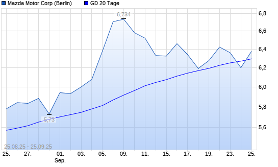 Mit dem Rücksetzer auf 6,23 EUR hat die Mazda Motor-Aktie am 24.09.2025 die 20-Tage-Linie nach unten gekreuzt.Die Mazda Motor-Aktie befindet sich seit dem 01.09.2025 im langfristigen Aufwärtstrend ...weiterlesen