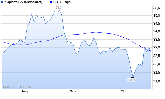 Mit dem Anstieg auf 32,98 EUR hat die Klepierre-Aktie am 17.10.2025 die 38-Tage-Linie nach oben gekreuzt.Die Klepierre-Aktie befindet sich seit dem 09.10.2025 im langfristigen Aufwärtstrend ...weiterlesen