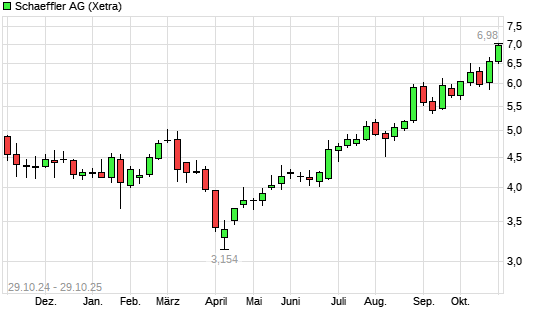 Mit dem Anstieg auf 6,91 EUR hat die Schaeffler-Aktie (ISIN DE000SHA0100) am 28.10.2025 ein neues 12-Monats-Hoch erreicht und damit den Kurs vom 24.10.2025 eingestellt.Die Schaeffler-Aktie befindet ...weiterlesen