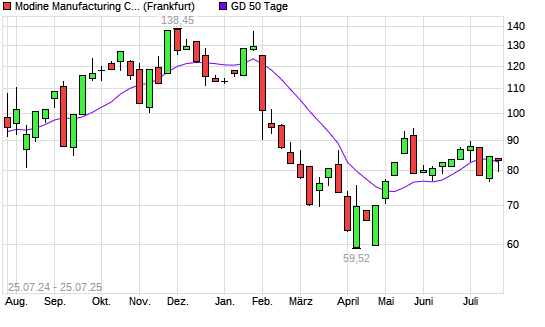 Mit dem Anstieg auf 83,26 EUR hat die Modine Manufacturing-Aktie am 24.07.2025 die 50-Tage-Linie nach oben gekreuzt.Die Modine Manufacturing-Aktie befindet sich seit dem 28.01.2025 im langfristigen ...weiterlesen