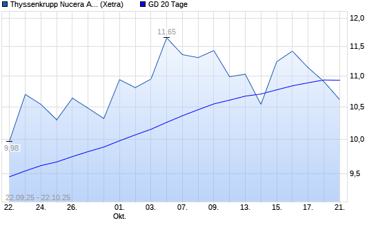 Mit dem Rücksetzer auf 10,57 EUR hat die thyssenkrupp nucera AG-Aktie am 21.10.2025 die 20-Tage-Linie nach unten gekreuzt.Die thyssenkrupp nucera AG-Aktie befindet sich seit dem 11.09.2025 ...weiterlesen