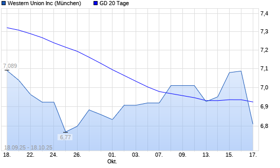 Mit dem Rücksetzer auf 6,82 EUR hat die Western Union-Aktie am 17.10.2025 die 20-Tage-Linie nach unten gekreuzt.Die Western Union-Aktie befindet sich seit dem 12.03.2025 im langfristigen ...weiterlesen