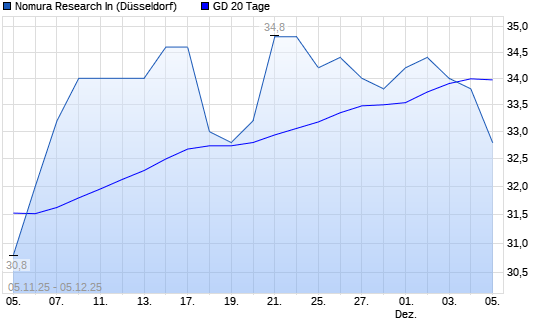 Mit dem Rücksetzer auf 33,80 EUR hat die Nomura-Aktie am 04.12.2025 die 20-Tage-Linie nach unten gekreuzt.Die Nomura-Aktie befindet sich seit dem 07.11.2025 im langfristigen Aufwärtstrend ...weiterlesen
