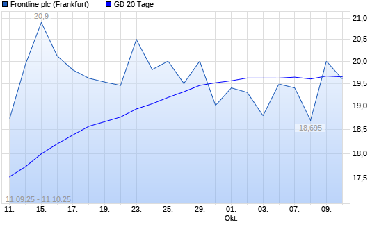 Mit dem Rücksetzer auf 19,60 EUR hat die Frontline-Aktie am 10.10.2025 die 20-Tage-Linie nach unten gekreuzt.Die Frontline-Aktie befindet sich seit dem 23.07.2025 im langfristigen Aufwärtstrend ...weiterlesen