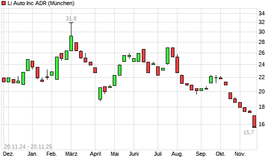 Mit dem Rücksetzer auf 15,90 EUR hat die Li Auto-Aktie (ISIN US50202M1027) am 19.11.2025 ein neues 12-Monats-Tief erreicht und damit den Kurs vom 17.11.2025 eingestellt.Die Li Auto-Aktie ...weiterlesen
