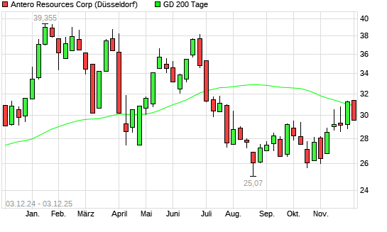 Mit dem Rücksetzer auf 30,18 EUR hat die Antero Resources-Aktie am 02.12.2025 die 200-Tage-Linie nach unten gekreuzt.Die Antero Resources-Aktie befand sich seit dem 01.12.2025 im langfristigen ...weiterlesen