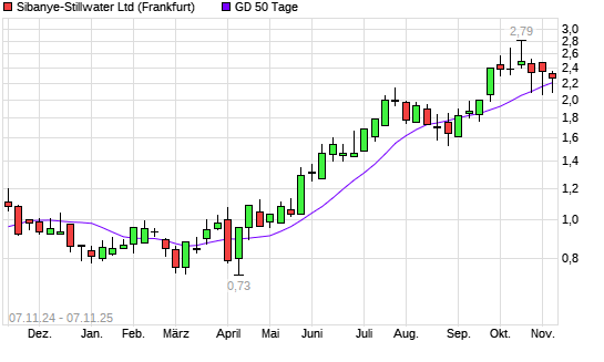 Mit dem Anstieg auf 2,24 EUR hat die Sibanye-Stillwater-Aktie am 06.11.2025 die 50-Tage-Linie nach oben gekreuzt.Die Sibanye-Stillwater-Aktie befindet sich seit dem 11.04.2025 im langfristigen ...weiterlesen