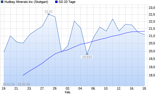 Mit dem Rücksetzer auf 21,13 EUR hat die Hudbay Minerals-Aktie am 17.02.2026 die 20-Tage-Linie nach unten gekreuzt.Die Hudbay Minerals-Aktie befindet sich seit dem 05.08.2025 ...weiterlesen