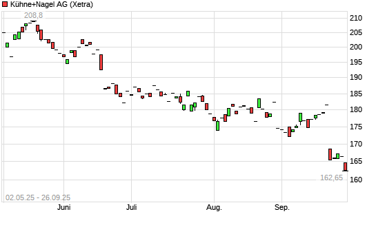 Mit dem Rücksetzer auf 160,85 EUR hat die Kühne + Nagel-Aktie (ISIN CH0025238863) am 25.09.2025 ein neues 5-Jahres-Tief erreicht und damit den Kurs vom 06.10.2020 eingestellt.Die Kühne ...weiterlesen