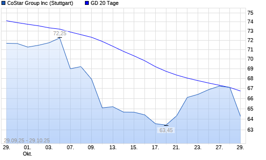 Mit dem Rücksetzer auf 66,14 EUR hat die CoStar-Aktie am 28.10.2025 die 20-Tage-Linie nach unten gekreuzt.Die CoStar-Aktie befindet sich seit dem 07.10.2025 im langfristigen Abwärtstrend ...weiterlesen