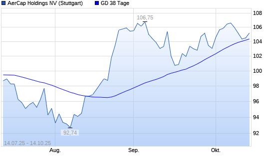 Mit dem Anstieg auf 105,90 EUR hat die Aercap Holdings-Aktie am 13.10.2025 die 38-Tage-Linie nach oben gekreuzt.Die Aercap Holdings-Aktie befindet sich seit dem 08.08.2025 im langfristigen Aufwärtstrend ...weiterlesen