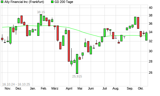 Mit dem Anstieg auf 34,21 EUR hat die Ally Financial-Aktie am 15.10.2025 die 200-Tage-Linie nach oben gekreuzt.Die Ally Financial-Aktie befand sich seit dem 13.10.2025 im langfristigen Abwärtstrend ...weiterlesen