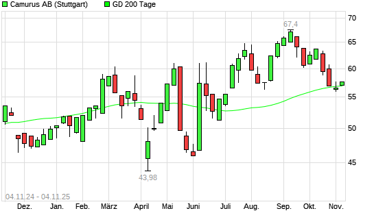 Mit dem Anstieg auf 57,10 EUR hat die Camurus Ord Shs-Aktie am 03.11.2025 die 200-Tage-Linie nach oben gekreuzt.Die Camurus Ord Shs-Aktie befand sich seit dem 27.10.2025 im langfristigen Abwärtstrend ...weiterlesen