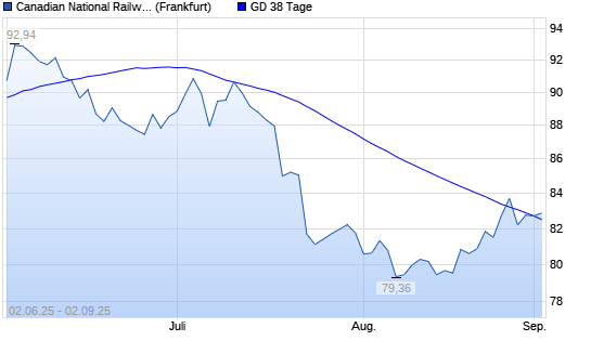 Mit dem Anstieg auf 82,72 EUR hat die Canadian National Railway-Aktie am 01.09.2025 die 38-Tage-Linie nach oben gekreuzt.Die Canadian National Railway-Aktie befindet sich seit dem 17.06.2024 ...weiterlesen
