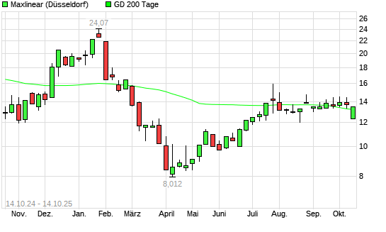 Mit dem Anstieg auf 13,66 EUR hat die MaxLinear-Aktie am 13.10.2025 die 200-Tage-Linie nach oben gekreuzt.Die MaxLinear-Aktie befand sich seit dem 10.10.2025 im langfristigen Abwärtstrend und ...weiterlesen
