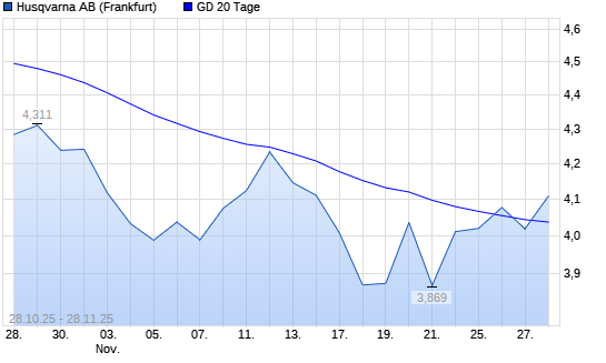 Mit dem Rücksetzer auf 4,02 EUR hat die Husqvarna-Aktie am 27.11.2025 die 20-Tage-Linie nach unten gekreuzt.Die Husqvarna-Aktie befindet sich seit dem 08.10.2025 im langfristigen Abwärtstrend ...weiterlesen