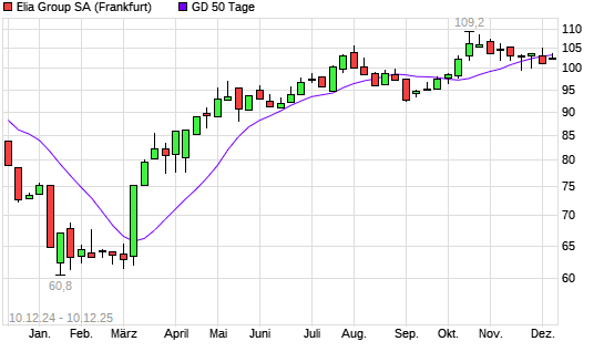 Mit dem Rücksetzer auf 102,40 EUR hat die Elia System Operator-Aktie am 09.12.2025 die 50-Tage-Linie nach unten gekreuzt.Die Elia System Operator-Aktie befindet sich seit dem 11.04.2025 ...weiterlesen