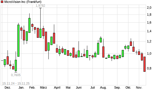 Mit dem Rücksetzer auf 0,76 EUR hat die Microvision-Aktie (ISIN US5949603048) am 14.11.2025 ein neues 12-Monats-Tief erreicht und damit den Kurs vom 17.12.2024 eingestellt.Die Microvision-Aktie ...weiterlesen