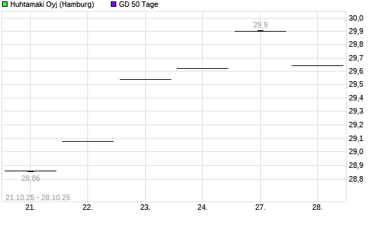 Mit dem Anstieg auf 29,86 EUR hat die Huhtamaeki-Aktie am 27.10.2025 die 50-Tage-Linie nach oben gekreuzt.Die Huhtamaeki-Aktie befindet sich seit dem 12.03.2025 im langfristigen Abwärtstrend ...weiterlesen