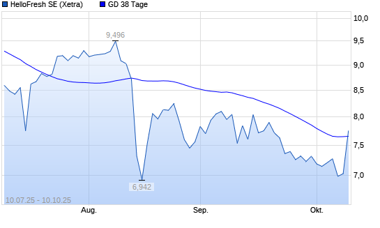 Mit dem Anstieg auf 7,79 EUR hat die HelloFresh-Aktie am 09.10.2025 die 38-Tage-Linie nach oben gekreuzt.Die HelloFresh-Aktie befindet sich seit dem 04.06.2025 im langfristigen Abwärtstrend ...weiterlesen