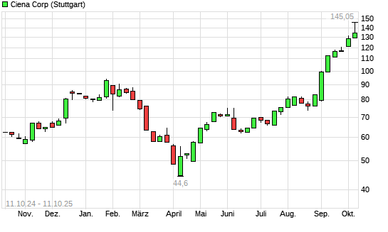 Mit dem Anstieg auf 137,90 EUR hat die Ciena-Aktie (ISIN US1717793095) am 10.10.2025 ein neues 10-Jahres-Hoch erreicht und damit den Kurs vom 09.10.2025 eingestellt.Die Ciena-Aktie befindet ...weiterlesen