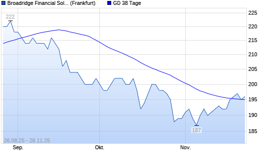 Mit dem Anstieg auf 196,00 EUR hat die Broadridge Financial-Aktie am 25.11.2025 die 38-Tage-Linie nach oben gekreuzt.Die Broadridge Financial-Aktie befindet sich seit dem 15.09.2025 im langfristigen ...weiterlesen