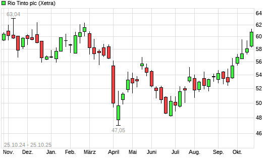 Mit dem Anstieg auf 60,86 EUR hat die Rio Tinto plc-Aktie (ISIN GB0007188757) am 24.10.2025 ein neues 6-Monats-Hoch erreicht und damit den Kurs vom 23.10.2025 eingestellt.Die Rio Tinto plc-Aktie ...weiterlesen