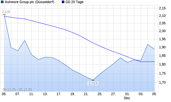 Mit dem Anstieg auf 1,86 EUR hat die Ashmore Group-Aktie am 04.12.2025 die 20-Tage-Linie nach oben gekreuzt.Die Ashmore Group-Aktie befindet sich seit dem 12.11.2025 im langfristigen Abwärtstrend ...weiterlesen
