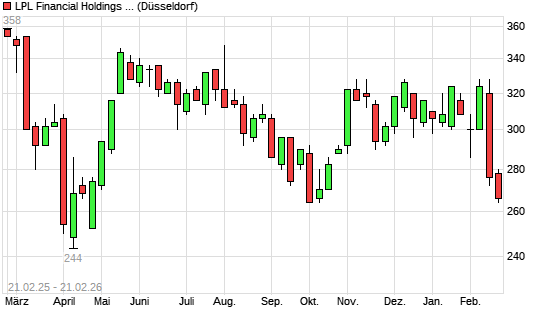 Mit dem Rücksetzer auf 262,00 EUR hat die LPL FINANCIAL HLDS-Aktie (ISIN US50212V1008) am 20.02.2026 ein neues 6-Monats-Tief erreicht und damit den Kurs vom 02.10.2025 ...weiterlesen