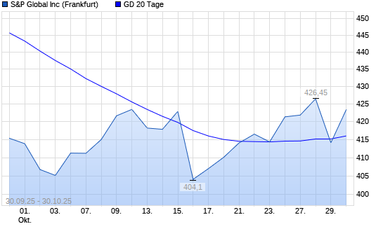Mit dem Rücksetzer auf 414,10 EUR hat die S&P Global-Aktie am 29.10.2025 die 20-Tage-Linie nach unten gekreuzt.Die S&P Global-Aktie befindet sich seit dem 15.09.2025 im langfristigen ...weiterlesen