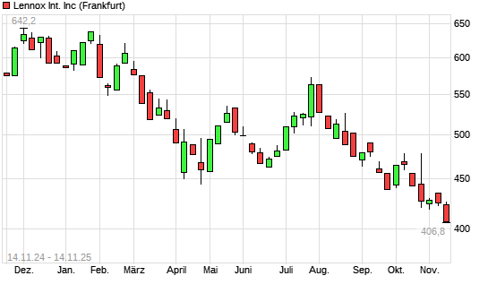 Mit dem Rücksetzer auf 409,10 EUR hat die LENNOX International-Aktie (ISIN US5261071071) am 13.11.2025 ein neues 12-Monats-Tief erreicht und damit den Kurs vom 12.11.2025 eingestellt.Die ...weiterlesen