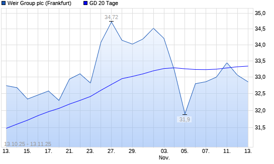 Mit dem Rücksetzer auf 33,06 EUR hat die Weir Group-Aktie am 12.11.2025 die 20-Tage-Linie nach unten gekreuzt.Die Weir Group-Aktie befindet sich seit dem 25.04.2025 im langfristigen Aufwärtstrend ...weiterlesen