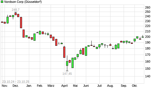 Mit dem Anstieg auf 203,20 EUR hat die Nordson-Aktie (ISIN US6556631025) am 22.10.2025 ein neues 6-Monats-Hoch erreicht und damit den Kurs vom 20.10.2025 eingestellt.Die Nordson-Aktie befindet ...weiterlesen