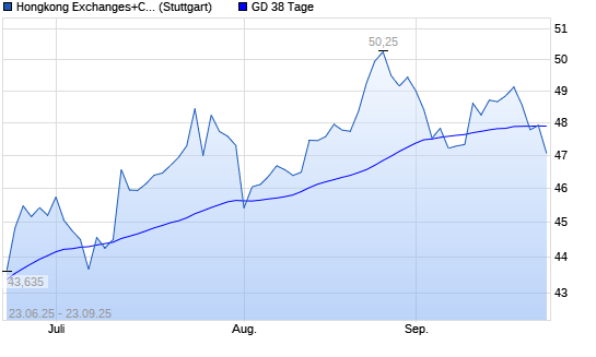 Mit dem Rücksetzer auf 48,12 EUR hat die Hongkong Exchanges+Clearing-Aktie am 22.09.2025 die 38-Tage-Linie nach unten gekreuzt.Die Hongkong Exchanges+Clearing-Aktie befindet sich seit dem ...weiterlesen