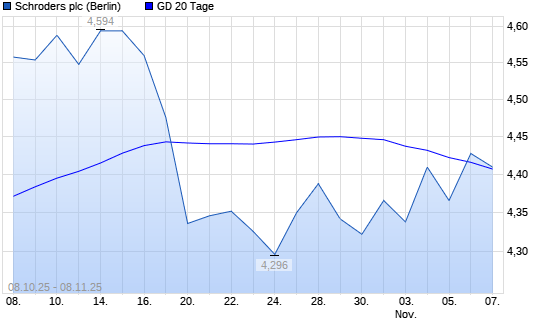Mit dem Rücksetzer auf 4,41 EUR hat die Schroders-Aktie am 07.11.2025 die 20-Tage-Linie nach unten gekreuzt.Die Schroders-Aktie befindet sich seit dem 31.10.2025 im langfristigen Aufwärtstrend ...weiterlesen