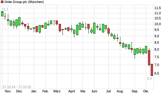 Mit dem Rücksetzer auf 6,60 EUR hat die UNITE GROUP-Aktie (ISIN GB0006928617) am 16.10.2025 ein neues 5-Jahres-Tief erreicht und damit den Kurs vom 15.10.2025 eingestellt.Die UNITE GROUP-Aktie ...weiterlesen