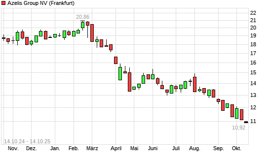 Mit dem Rücksetzer auf 11,00 EUR hat die Azelis Group N.V-Aktie (ISIN BE0974400328) am 13.10.2025 ein neues All-Time-Low erreicht und damit den Kurs vom 10.10.2025 eingestellt.Die Azelis ...weiterlesen