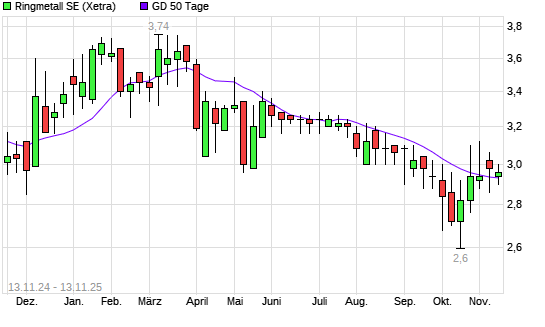 Mit dem Anstieg auf 2,88 EUR hat die Ringmetall-Aktie am 12.11.2025 die 50-Tage-Linie nach oben gekreuzt.Die Ringmetall-Aktie befindet sich seit dem 23.07.2025 im langfristigen Abwärtstrend ...weiterlesen