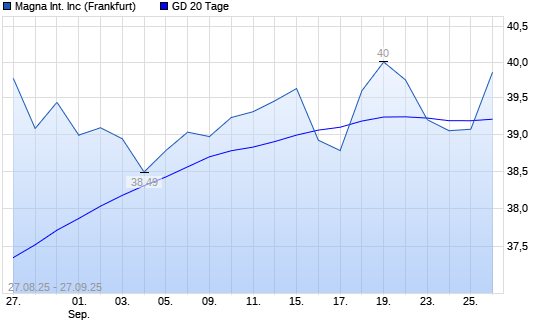 Mit dem Anstieg auf 39,86 EUR hat die Magna International-Aktie am 26.09.2025 die 20-Tage-Linie nach oben gekreuzt.Die Magna International-Aktie befindet sich seit dem 04.08.2025 im langfristigen ...weiterlesen