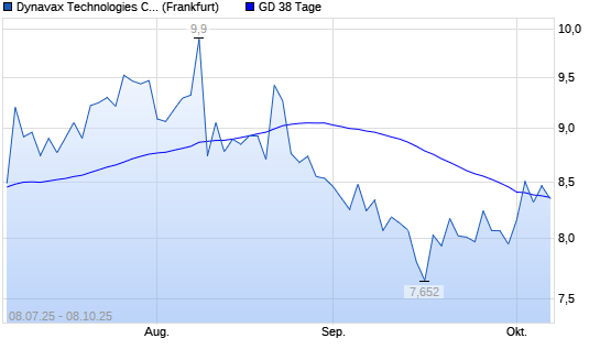 Mit dem Rücksetzer auf 8,35 EUR hat die Dynavax Technologies-Aktie am 07.10.2025 die 38-Tage-Linie nach unten gekreuzt.Die Dynavax Technologies-Aktie befindet sich seit dem 09.04.2025 im ...weiterlesen