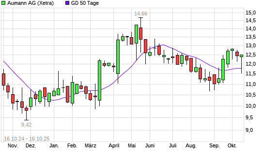 Mit dem Rücksetzer auf 11,26 EUR hat die Aumann-Aktie am 15.10.2025 die 50-Tage-Linie nach unten gekreuzt.Die Aumann-Aktie befindet sich seit dem 14.10.2025 im langfristigen Abwärtstrend ...weiterlesen