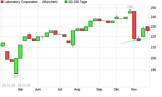 Mit dem Anstieg auf 224,00 EUR hat die Laboratory Corporation of America-Aktie am 19.11.2025 die 200-Tage-Linie nach oben gekreuzt.Die Laboratory Corporation of America-Aktie befand sich seit ...weiterlesen